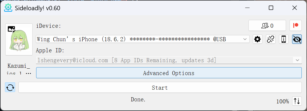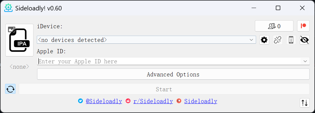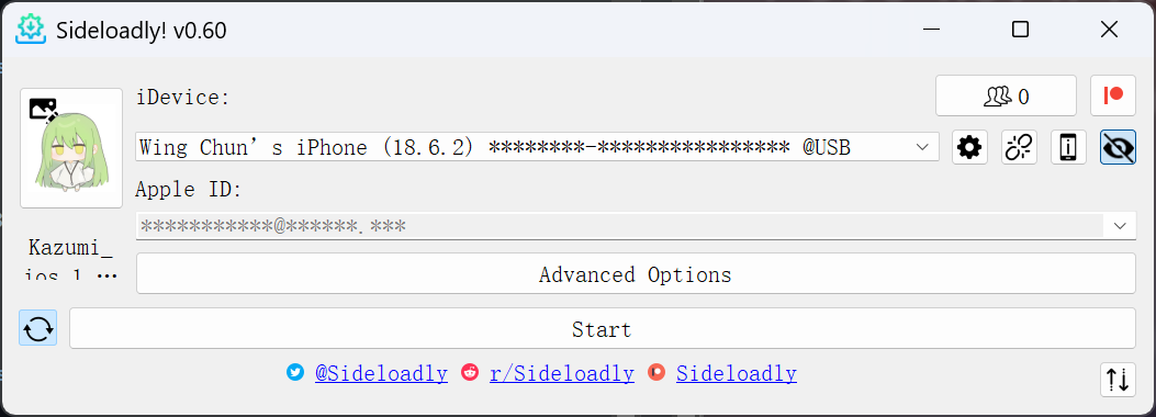 点击 IPA 图标,在窗口中选择你下载的 IPA 文件。选择好后如图所示,确认无误后点击 Start
